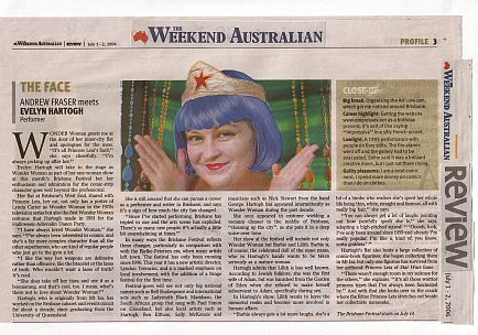 2006 July 1-2 ANDREW FRASER The Face: Evelyn Hartogh performer Review WEEKEND AUSTRALIAN p.3.