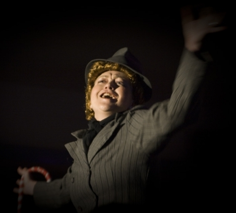 EVELYN INTERNATIONAL: Here at the House of Evelyn International we believe nature is but a blank canvas for beauty, that everything can be improved upon with the aid of a scalpel. This top model came to us for a makeover [Slide 1: Barbie]. We took what she had and turned her into an icon of beauty [Slide 2: Evelyn squeezing breasts together with a screwed up face]. Thank you and now back to the show. [Replace black PVC coat]