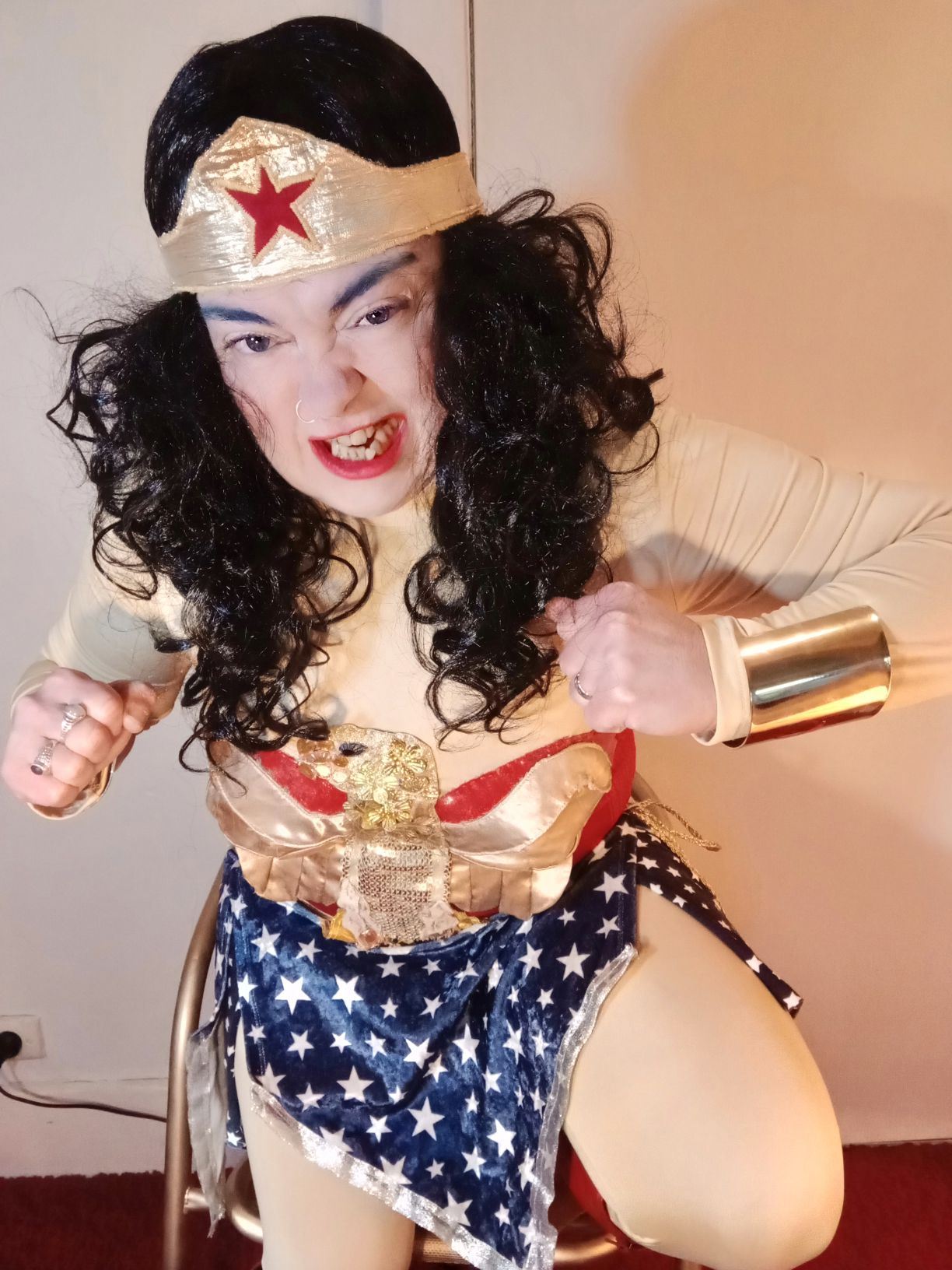 EV: I remember Lynda Carter on the TV, & just being blown away, & I already had a few comics, & colouring books, & I had a little MEGO figure, & it was the first live action portrayal of a comic book character [that I had seen] & I just longed for stuff like that in the 1970s, & 1980s, just adored her, just adored the whole idea of truth, & love, were her main, like if you look back at the 1970s series, she is actually a much gentler character, I mean she still tough, & bad ass, & throws the villains, & what not, & breaks free, & fights off the bullets, & all of that, but the 1970s Lynda Carter Wonder Woman, I think her best contemporary, with the mood of the character, is a comic called The Unbeatable Squirrel Girl, she's a Marvel creation, & she's kinda for younger readers, but the cutest thing about The Unbeatable Squirrel Girl is whenever she has a battle with someone she always resolves it peacefully, she finds out why is, why are you doing this mayhem? What do you really need? She basically psychoanalyses the villains, gives them a bit of therapy, finds out what the real problem is, & solves it for them! So no one has to fight. So this was the ethos of the 1970s Wonder Woman TV show in a lot of ways, I mean there were battles, but at the crux of it, that was what really appealed to me, I didn't like conflict, I didn't like deception, these were things to me as a child which really upset me, I was weird child, perhaps was autistic, maybe I have Aspergers as few friends suggested? Because I have always wanted to speak the truth, & I read a lot, & need to remember a lot, so remembering lies for me would just be exhausting, a brain can only hold as much at the front at a time, well my brain, it can take me while to get back to the data banks. So honesty has always been massively important to me, which has often been a problem, it has led to me being tactless, I mean no quality is good or evil, it can be an extreme, & extreme honesty can be tactless, so I have had to learn to temper it at times.