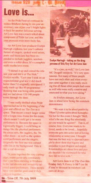 1999 June 'Pride Festival Turns Ten: Art Love Jam Queensland Pride frontpage story